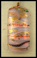 These are my newest little golden dragonfly pendants. Four have 22kt gold hand painting and one has been hand painted with white gold.