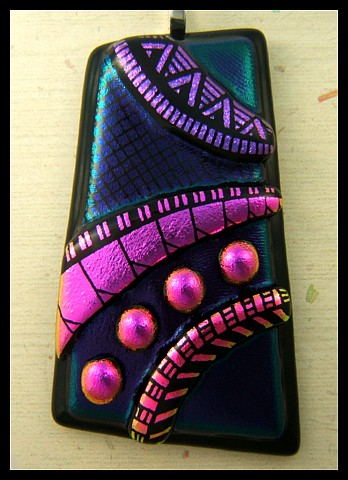 My Zinnia pendant was try two. The first one could have been very nice, but as is the way of dichroic glass and the way it sometimes fires ~ it just didn't quite make it.