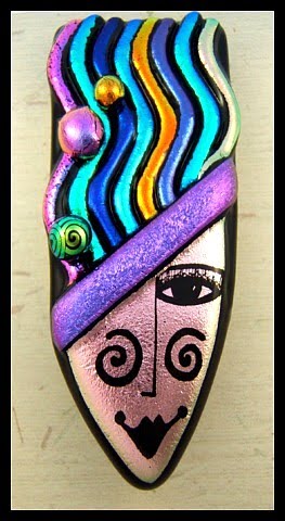 And lastly, multi coloured hand made glass like lots of little bubbles. The picture really doesn't do this one justice, the dichroic glass background has an amazing glow ~ it's almost like it is lit up from behind :^)