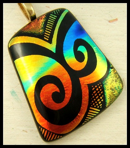 The colours in this next pendant are stunning!! More swirly engraving and a bit of glossy glass for good measure,
