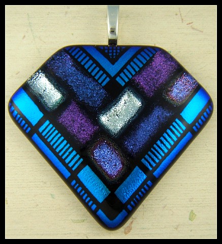 Blue, purple, violet and silver ~ YUM!! I love these colours together and the glossy with the satin glass adds visual depth to this pendant.