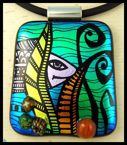 A variation on my Falling Leaves pendant from a couple of weeks ago, this time I have added a few little sparkly bubbles and I'm loving the effect. And the colour is just gorgeous ~ it's from a variegated piece of glass, so highly unlikely to be repeated.