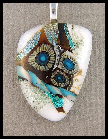 This very first one is using my "new to me" glass. I could not be happier with how this pendant finished up! I think it is my favourite one to date. There is so much happening in this little galaxy of glass. As well as drifts of teal dichro, there is a little hand made twistie (thanks Remy!!), three gorgeous little hand made murrini flowers from lori&kim and two other types of glass as well.