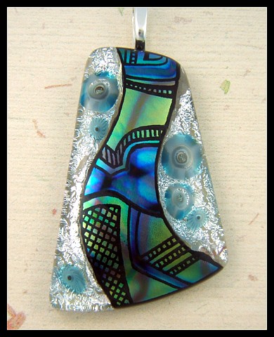 The next two pendants have been drilled before being fired. I haven't quite decided yet what will become of these ~ whether I will wire them up or offer them as they are. The glass I have used here is a fairly recent acquisition and is absolutely gorgeous :^)