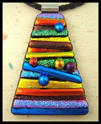 The Pick Up Stix pendant is a multi coloured one using a combination of satin and super sparkly glass.