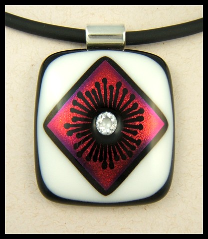 This first little baby is a personal favourite. I think I said in the listing there were five different types of glass used in this piece ~ there are actually six! Four times through the kiln and presented with a sterling silver bail and chain. I really love the soft, but not wussy colours in this pendant.