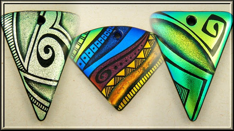 Two more of my dimensional slide pendants. The blue in the first one is a really vivid cobalt blue and the purple in the second one is a very definite salmon pink when viewed from the side.