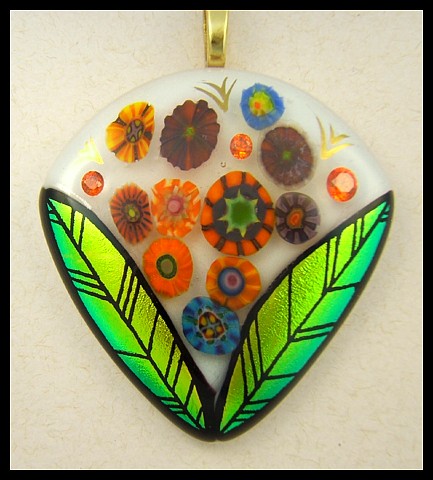 Absolutely amazing uses for dichroic glass.. I can't remember ever seeing pendants that look as detailed as yours. How did you make that leaf look??